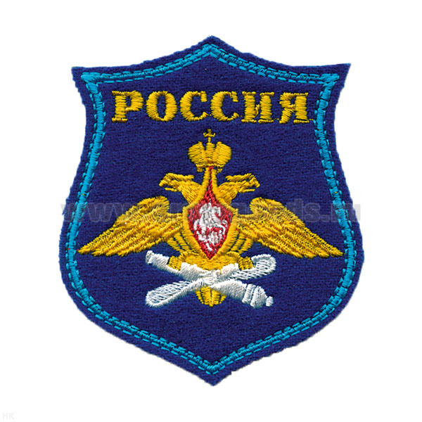 Шеврон вышит. на парад Россия РВСН (синий фон)