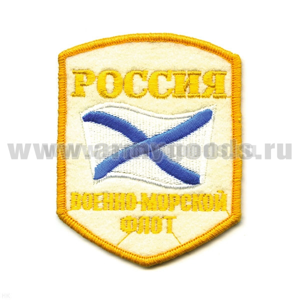 Шеврон вышит. Россия ВМФ (5-уг. с флагом) белый, люрекс