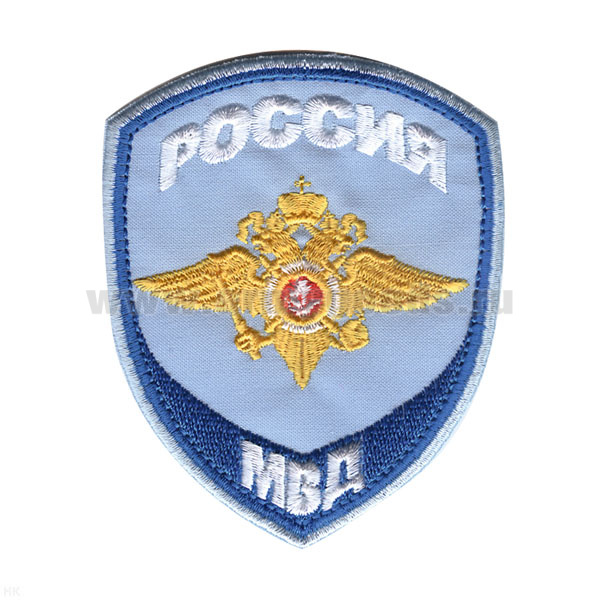 Шеврон вышит. Россия МВД (5-уг. с флагом) люрекс