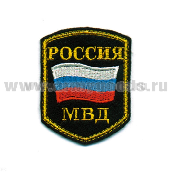 Шеврон вышит. Россия МВД (5-уг. с флагом)