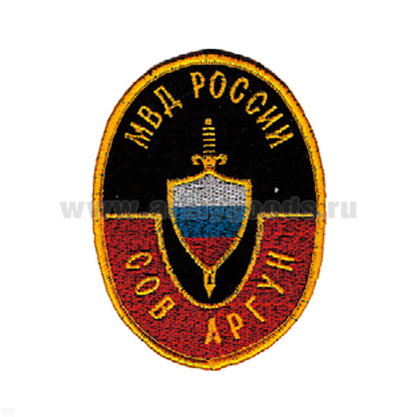 Шеврон вышит. МВД России СОВ Аргун (овал)