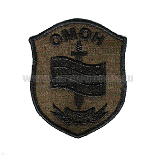 Шеврон вышит. ОМОН МВД (щит с флагом и мечом) полевой