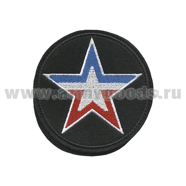 Шеврон вышит. Армия России (звезда) фон черный, звезда - триколор (на липучке)