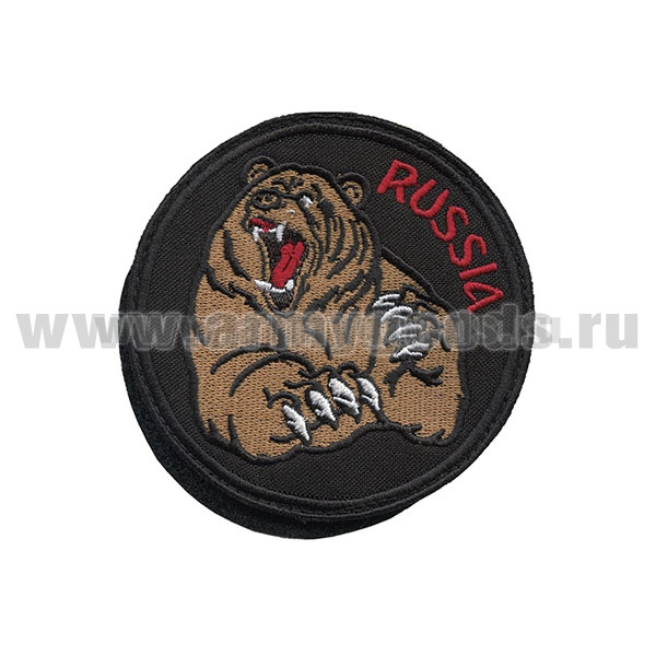 Шеврон вышит. Russia (медведь) кругл, на липучке