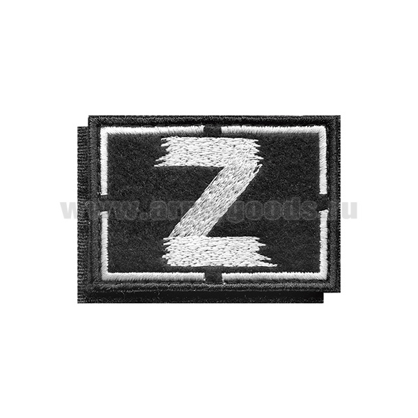Шеврон вышит. на кепку Z (черн фон, белая вышивка) 70х50 мм на липучке