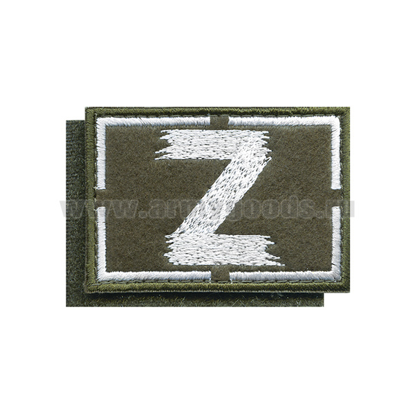 Шеврон вышит. на кепку Z (оливк фон, белая вышивка) 70х50 мм на липучке
