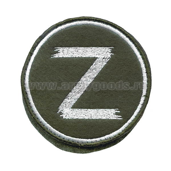 Шеврон вышит. Z (оливковый фон, белая вышивка, кругл.) на липучке