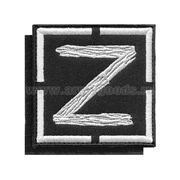 Шеврон вышит. Z в квадрате (черный фон, белая вышивка) на липучке