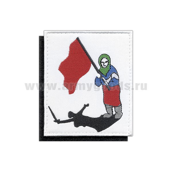 Шеврон вышит. Бабушка с красным флагом и тенью монумента Родина-мать зовет (бел. фон) на липучке