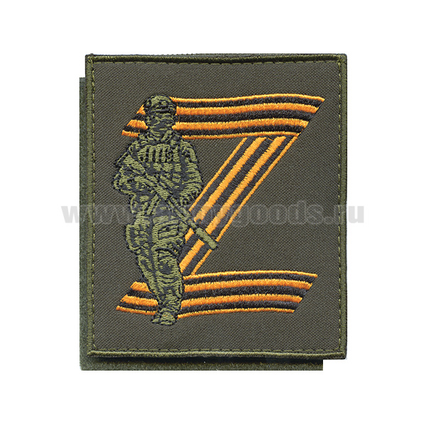 Шеврон вышит. Z (боец на фоне знака, гвардейск. вышивка) оливковый фон, на липучке