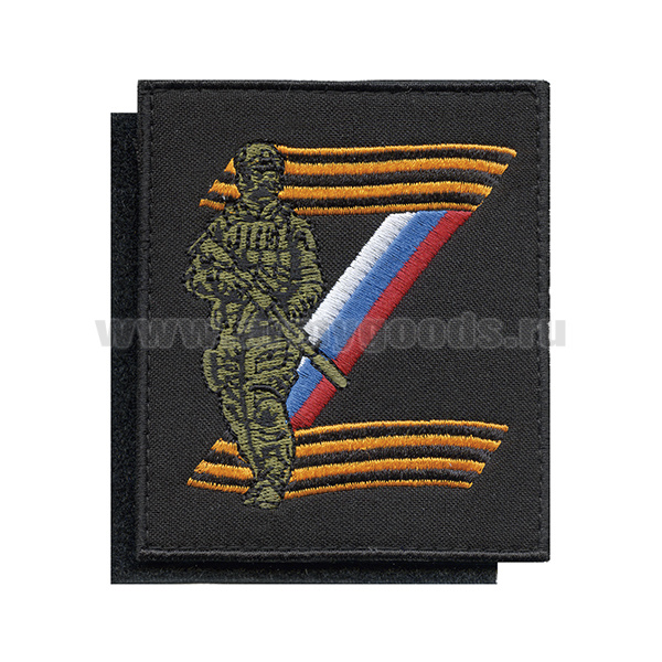 Шеврон вышит. Z (боец на фоне знака, вышивка триколор/гвардейск.) черный фон, на липучке