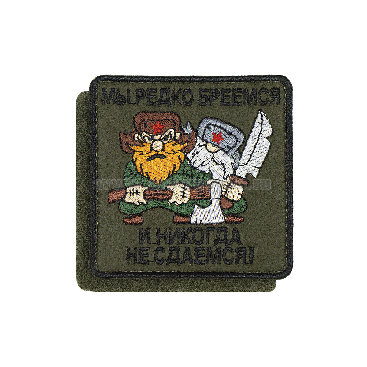 Шеврон вышит. Мы редко бреемся и никогда не сдаемся (на липучке)