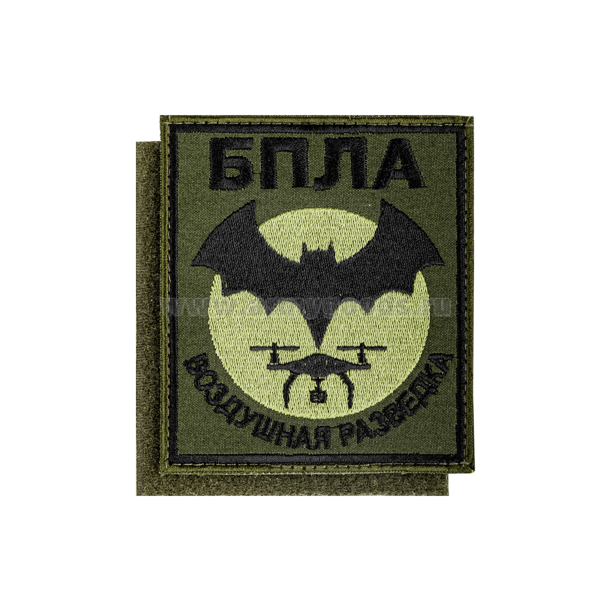 Шеврон вышит. БПЛА Воздушная разведка (85х100 мм) оливковый фон, на липучке