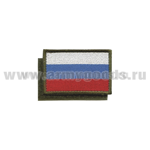 Шеврон вышит. Флаг РФ (40x60 мм) (кант оливковый) на липучке
