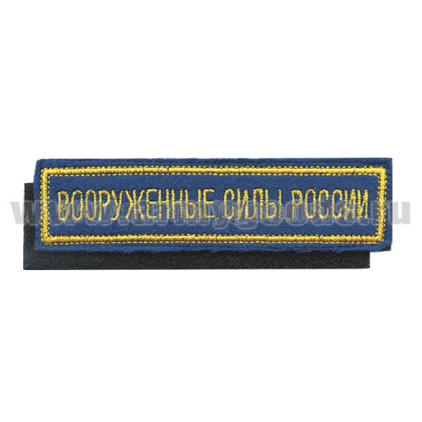 Нашивка на грудь вышит. Вооруженные силы России (125x25 мм) васильковый фон, желтый кант (на липучке)