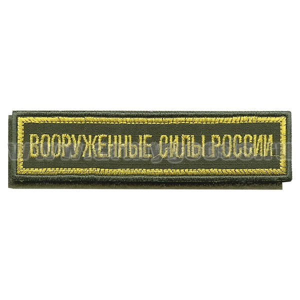 Нашивка на грудь вышит. Вооруженные силы России (125x25 мм) (оливковый фон, ткань Rip-Stop) на липучке