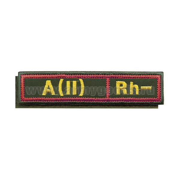 Нашивка на грудь вышит. Гр. кр. A (II) отрицат. (оливковый фон, красный кант, ткань Rip-Stop) на костюм офисный (125x25 мм) на липучке