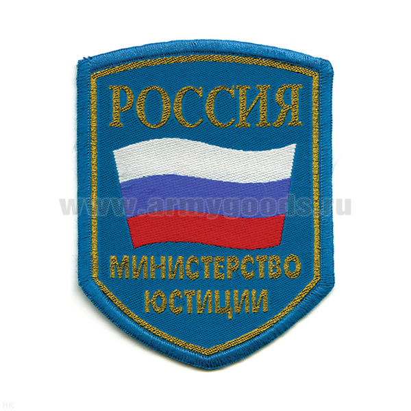 Шеврон тканый Россия МЮ (5-уг. с флагом) голуб.