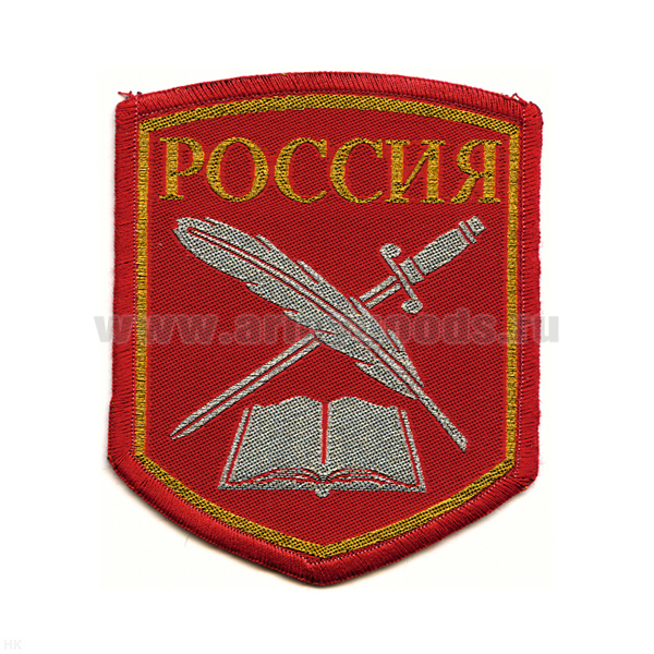 Шеврон тканый КК (книга, перо и шпага) 5-уг. (красн.)