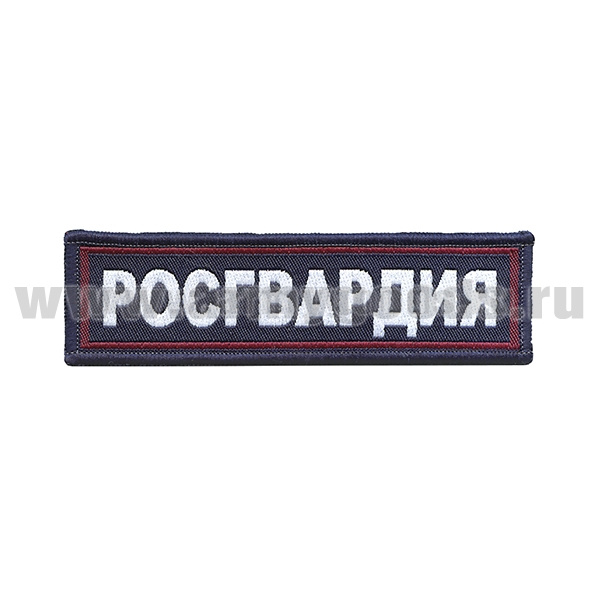 Нашивка на грудь тканая Росгвардия (темно-синий фон, красный кант, серебристые буквы)