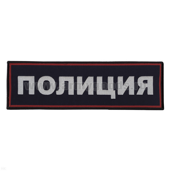 Нашивка на спину тканая Полиция (темно-синий фон, красный кант, серебристые буквы)