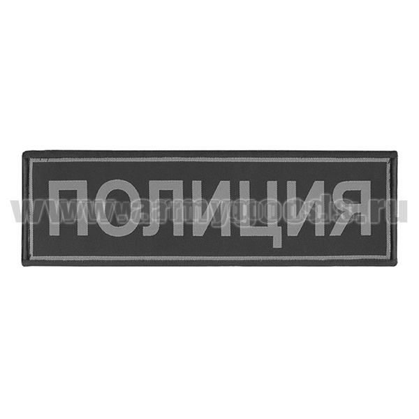 Нашивка на спину тканая Полиция (черный фон, серый кант, серые буквы)