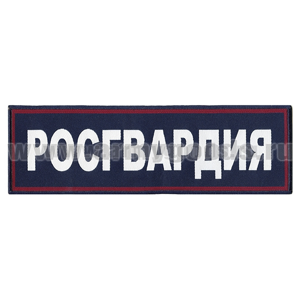 Нашивка на спину тканая Росгвардия (темно-синий фон, красный кант, серебристые буквы)