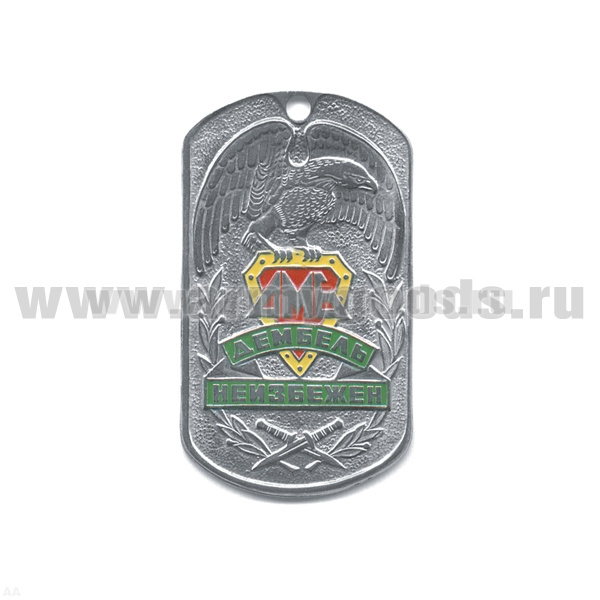 Жетон (нерж. ст., эмал.) Дембель неизбежен (орел) надп. на зел. фоне