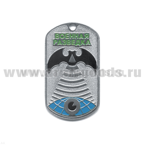 Жетон (нерж. ст., эмал.) Военная разведка (летуч. мышь) надп. зел. буквами