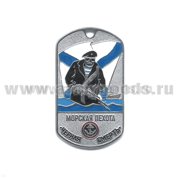 Жетон (нерж. ст., эмал.) Морская пехота "черн. смерть" (скелет на фоне андр. флага)