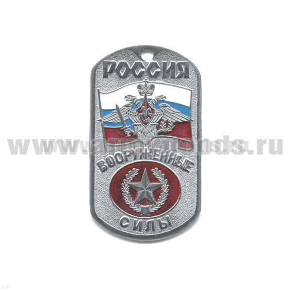 Жетон (нерж. ст., эмал.) сер. Россия ВС (с орлом РА на флаге РФ) сухопут. войска (звезда на красн. фоне)