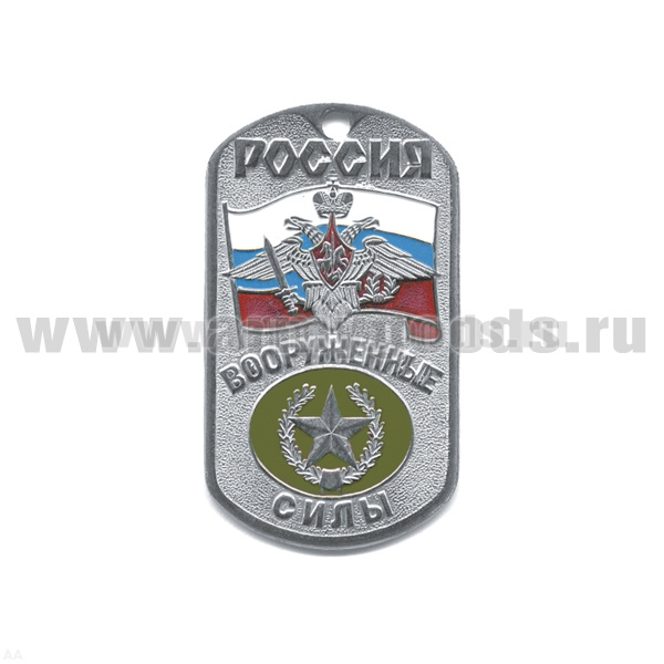 Жетон (нерж. ст., эмал.) сер. Россия ВС (с орлом РА на флаге РФ) сухопут. войска (звезда на оливк. фоне)