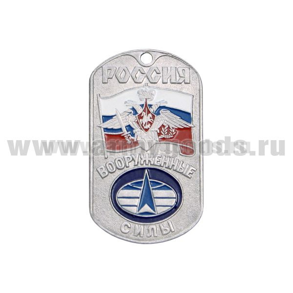 Жетон (нерж. ст., эмал.) сер. Россия ВС (с орлом РА на флаге РФ) космические войска нов/обр