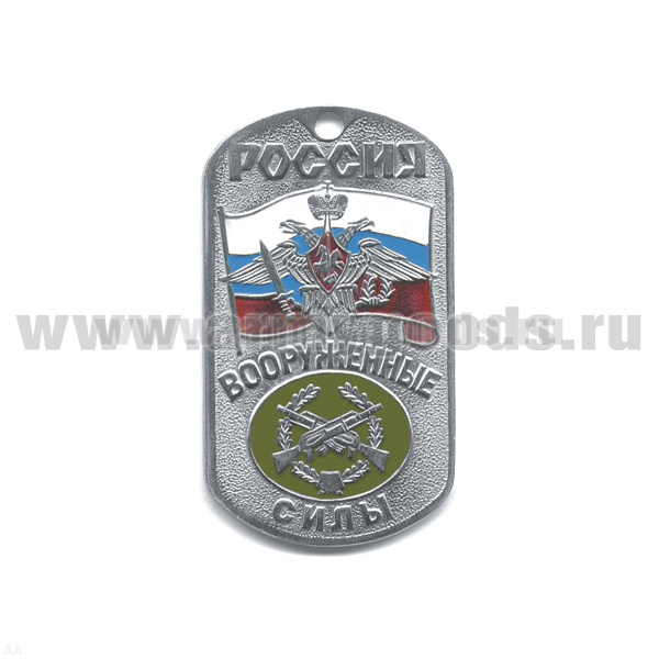 -Жетон (нерж. ст., эмал.) сер. Россия ВС (с орлом РА на флаге РФ) мотострелк. войска