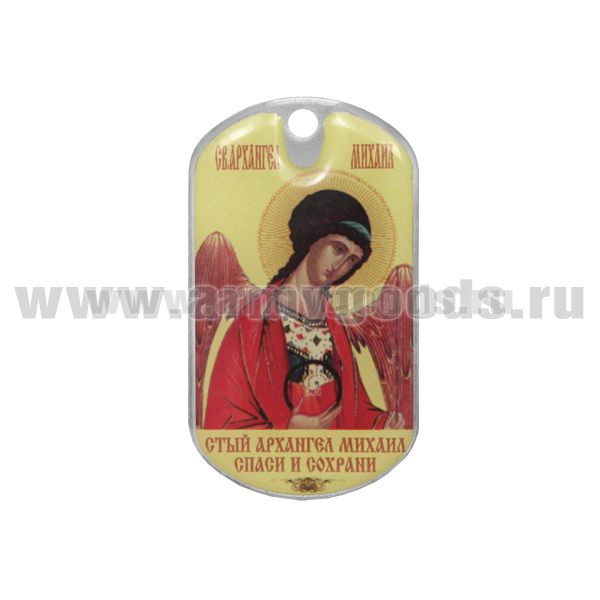 Жетон (смола) Архангел Михаил (спаси и сохрани) в руках трость-копьё, щит