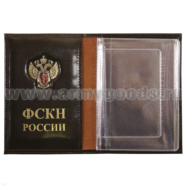 Обложка-книжка кожаная под автодокументы со значком ФСКН РФ