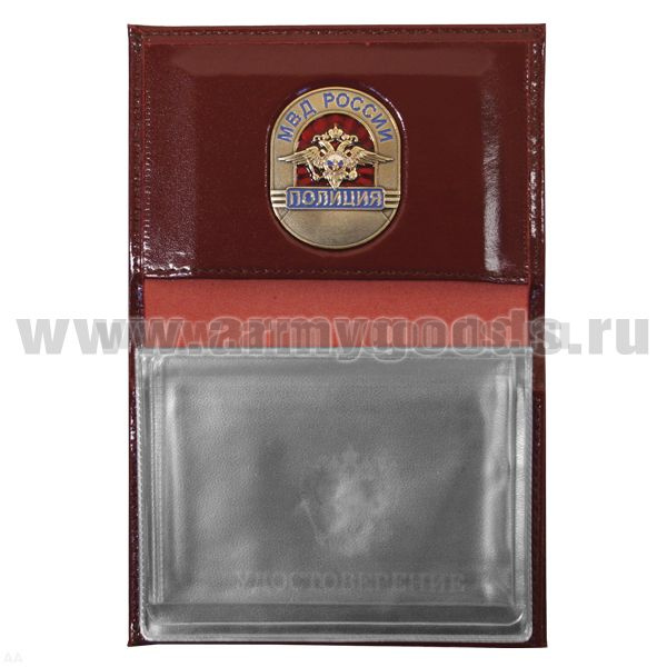 Обложка-книжка кожаная под автодокументы со значком Полиция (овальный)