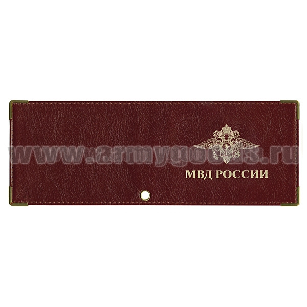 Обложка кожаная под удост. с мет. уголками и отв. д/цеп. на сгибе МВД России
