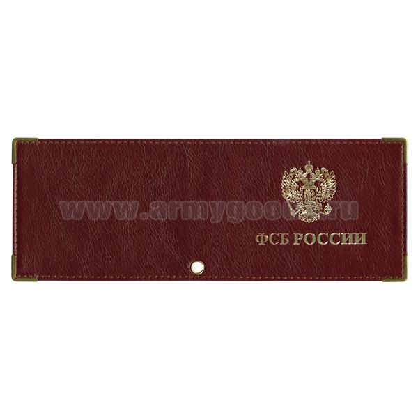 Обложка кожаная под удост. с мет. уголками и отв. д/цеп. на сгибе ФСБ России (орел РФ)