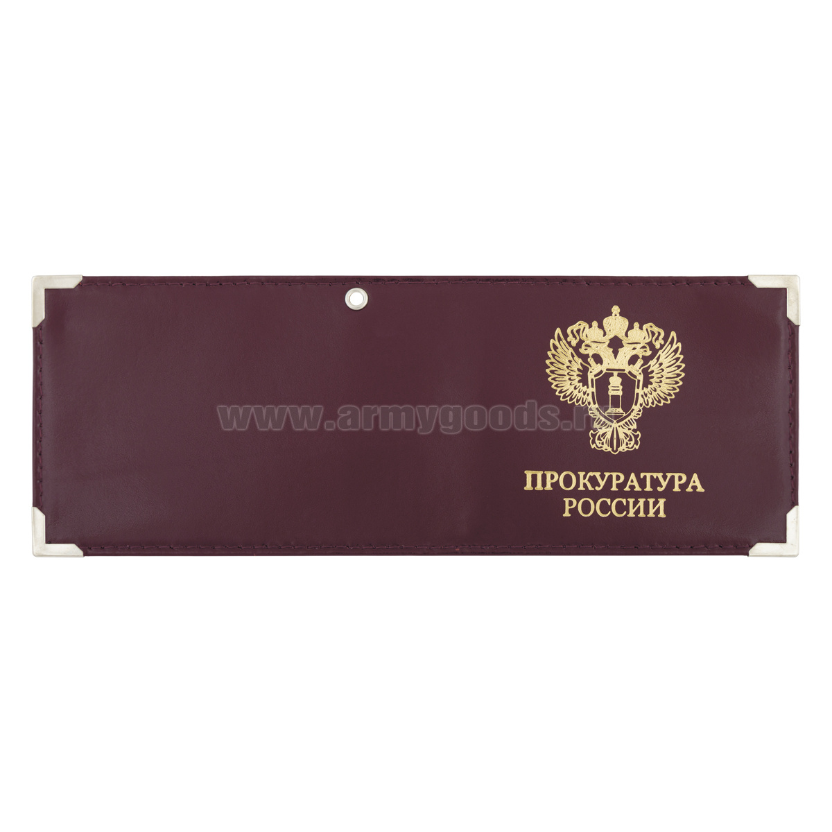 Обложка кожаная под удост. с мет. уголками и отв. д/цеп. на сгибе Прокуратура России (с эмбл. прокуратуры)