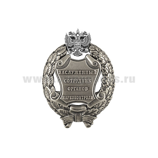 -Значок мет. Заслуженный сотрудник органов наркоконтроля Российской Федерации