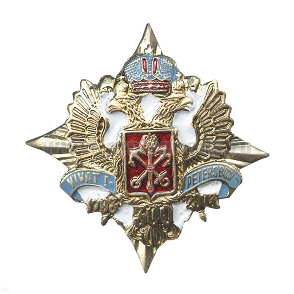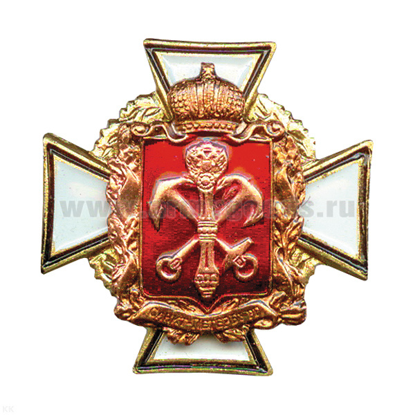Значок мет. Герб СПб на белом кресте (лат.)