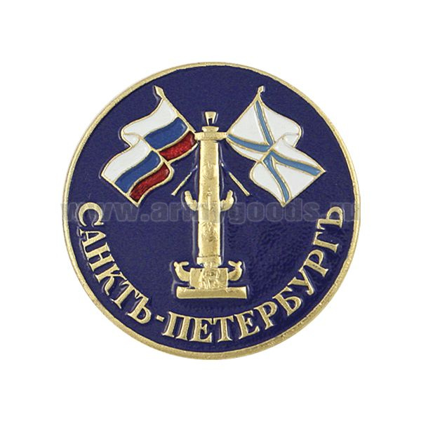 Значок мет. Санктъ-Петербургъ (Ростральная колонна и флаги, кругл.)