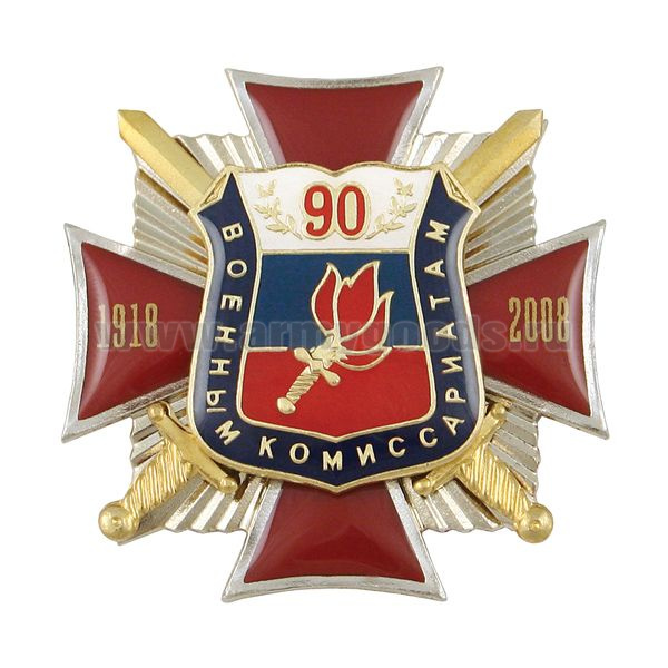 Значок мет. 90 лет военным комиссариатам 1918-2008 (красн. крест с лучами и мечами, с накладкой-щитом, смола)