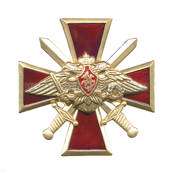 Значок мет. Крест с мечами и орлом РА (красн.)