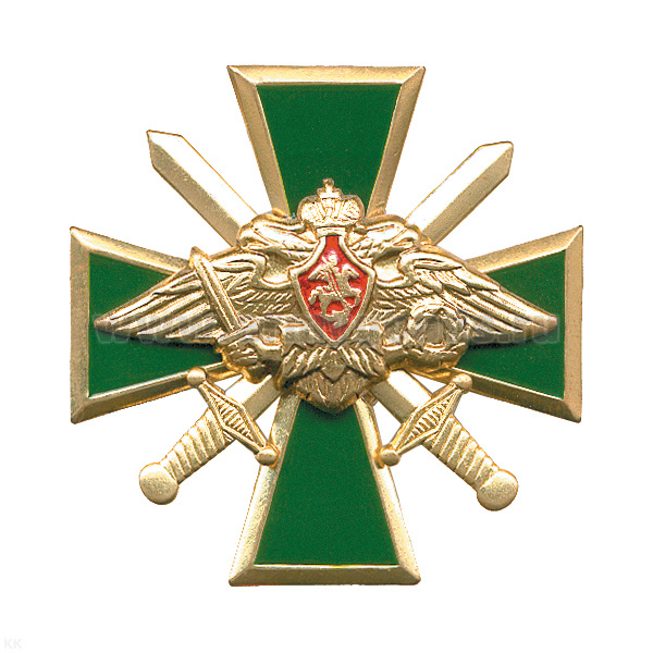 Значок мет. Крест с мечами и орлом РА (зел.)
