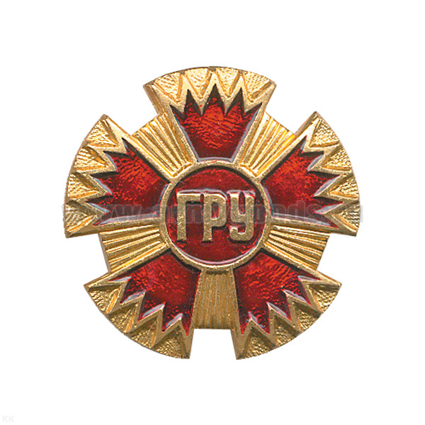 Значок мет. ГРУ (буквы на фоне гвоздики) лат.