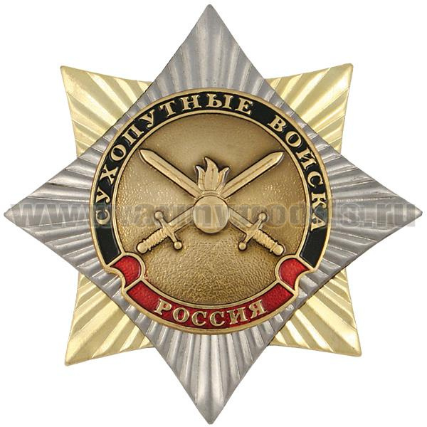 Значок мет. Орден-звезда Сухопутные войска (эмблема нов/обр)