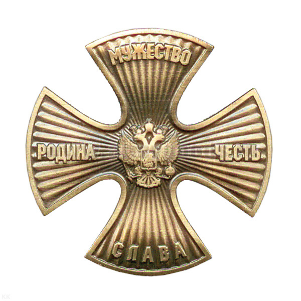 Значок мет. Крест Родина, Мужество, Честь, Слава (черненый с лучами)