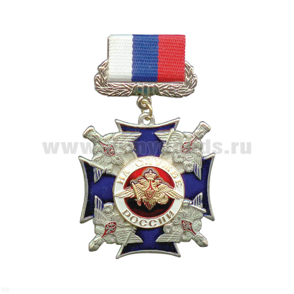 Медаль На службе России (син. крест с 4 орлами по углам) (на планке - лента РФ)